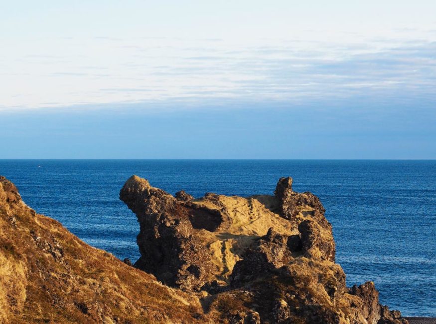 Last but not least, we have the incredibly photogenic pebbled beach and lava field of Djúpalónssandur, which you can find at the very western tip of the peninsula. It’s one of the very few ocean access points in an area that is otherwise mostly made up of dizzying cliffs; as such, it used to be a thriving fishing community. Although signs of this era are few and far between nowadays, you can still catch a glimpse of “strength stones,” ranging from 23 to 154 kilos. These stones were used as a test of a prospective fisherman’s strength. Those who couldn’t lift all of them effortlessly were deemed unsuitable for a life at sea.